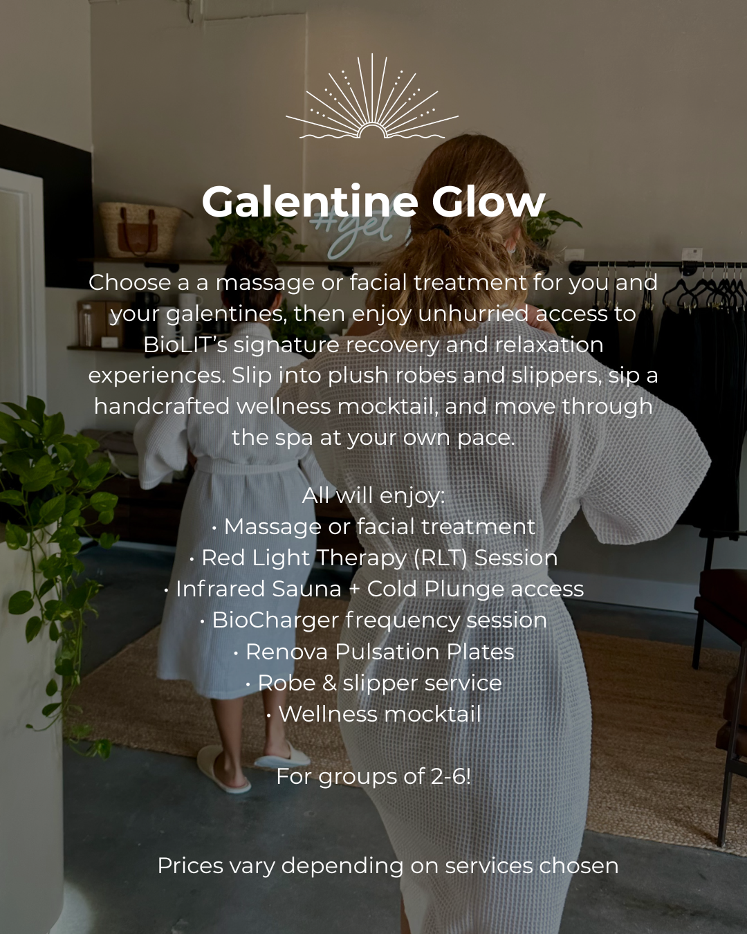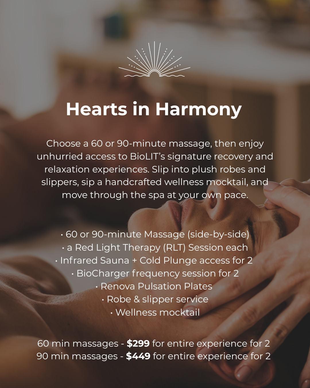 To enjoy the full experience, simply book your massage or facial—everything else is included automatically during our Valentine’s Wellness Week. We’re always happy to help with reservations or assist in organizing a group experience.